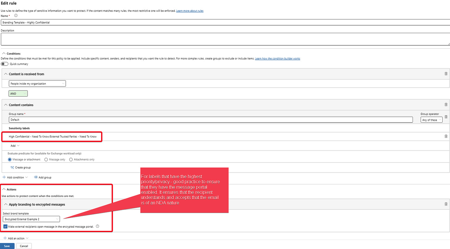 An additional rule will be created to enable and apply Encryption Branding Templates as well as instruct Microsoft Advanced Purview Message Encryption on;